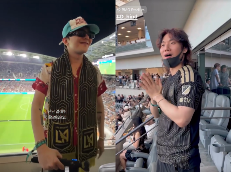 지드래곤은 5일 자신의 SNS에 미국 LA의 BMO 스타디움에 방문해 경기를 관람 중인 모습을 공개하며 “엘레리(엘에이)”라고 적었다.