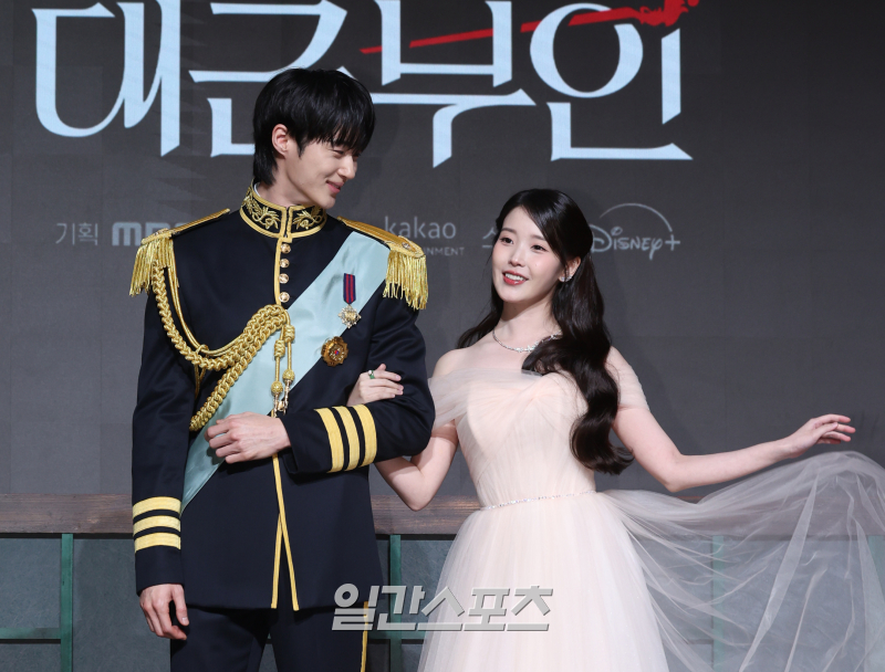 배우 변우석, 아이유가 6일 오후 서울 강남구 조선 팰리스 서울 강남에서 열린 MBC 새 금토드라마 '21세기 대군부인' 제작발표회에 포토타임을 갖고 있다.