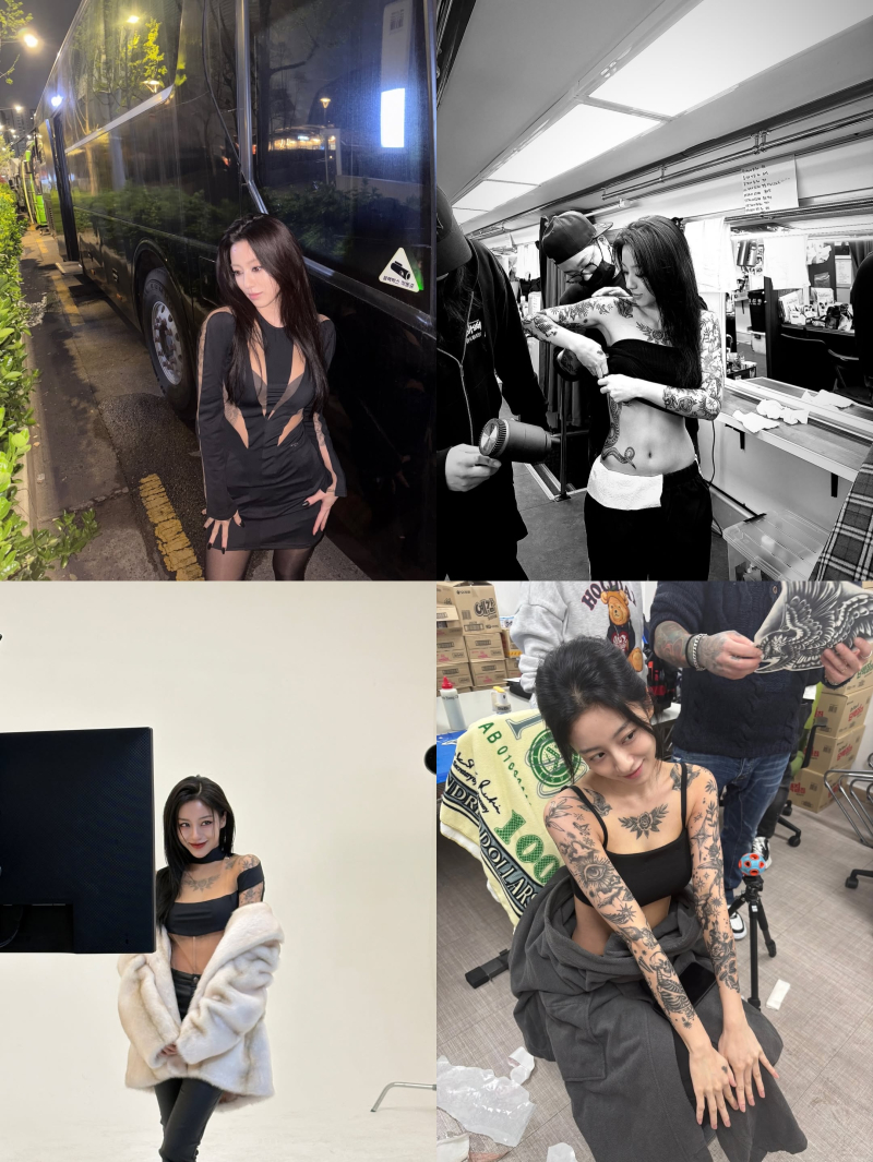 사진 속 강민아는 극중 의상을 입고 포즈를 취하는가 하면, 특수분장에 여념이 없는 모습이다. 특히 스모키 메이크업과 상반신을 뒤덮은 타투 분장으로 반전 매력을 선사, 시선을 사로잡는다.