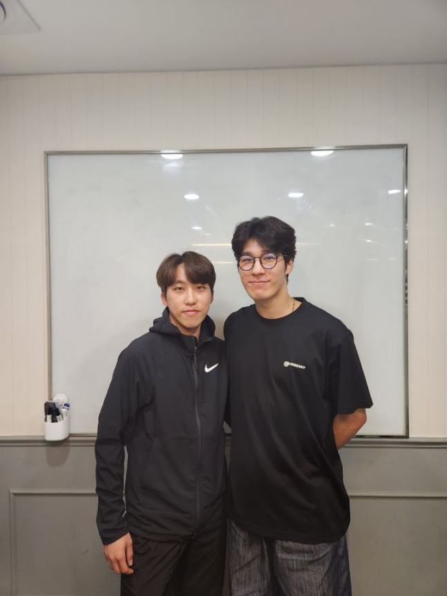 쇼트트랙 황대헌(오른쪽)이 지난 2023~24시즌 논란이 된 팀킬 논란과 관련, 박지원에게 찾아가 직접 사과했다. 사진=라이언앳