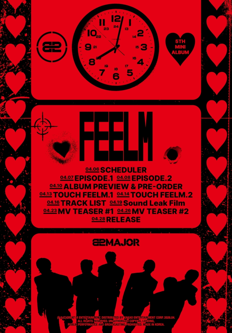 82메이저는 지난 6일 공식 SNS를 통해 미니 5집 ‘필름’(FEELM) 스케줄러 이미지를 게재했다.