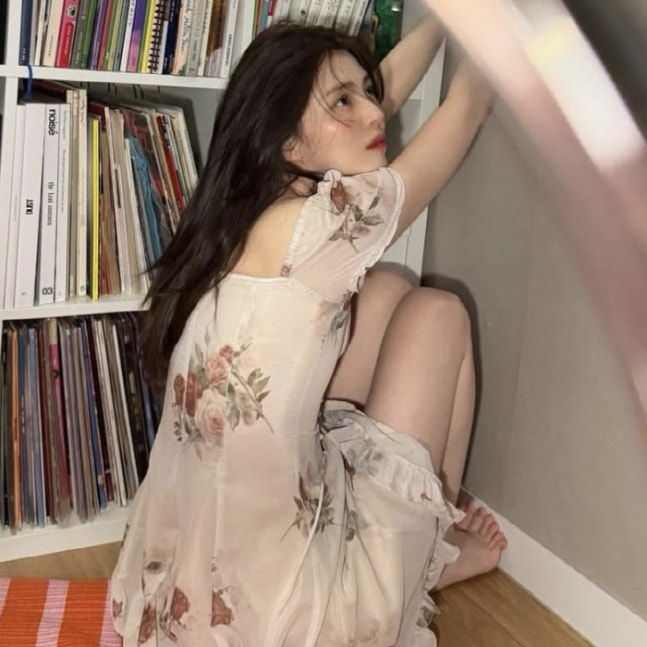 공개된 사진 속 한소희는 붉은 장미 패턴이 수놓아진 화이트 시폰 드레스를 입고 독보적인 비주얼을 뽐내고 있다. 가녀린 어깨라인이 드러나는 오프숄더 스타일의 드레스는 한소희 특유의 신비롭고 빈티지한 매력을 배가시켰다.