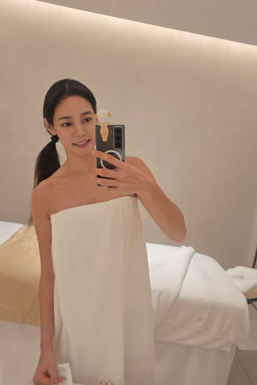 안현모는 12일 자신의 SNS에 “너무나도 편안하고 황홀한 힐링이었다”라며 스파에서 관리를 받는 일상을 공개했다. 사진 속 안현모는 관리를 받기 전 가운을 입고 거울 셀카를 찍고 있다.