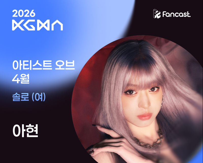 지난 7일부터 12일까지 팬캐스트를 통해 진행된 ‘2026 KGMA 아티스트 오브 4월’ 솔로 여자 부문 투표에서 아현은 3만 3380표를 획득하며 정상을 차지했다. 아현은 팬들의 적극적인 참여 속에 ‘4월의 아티스트’ 여자 솔로 부문 트로피의 주인공이 됐다.