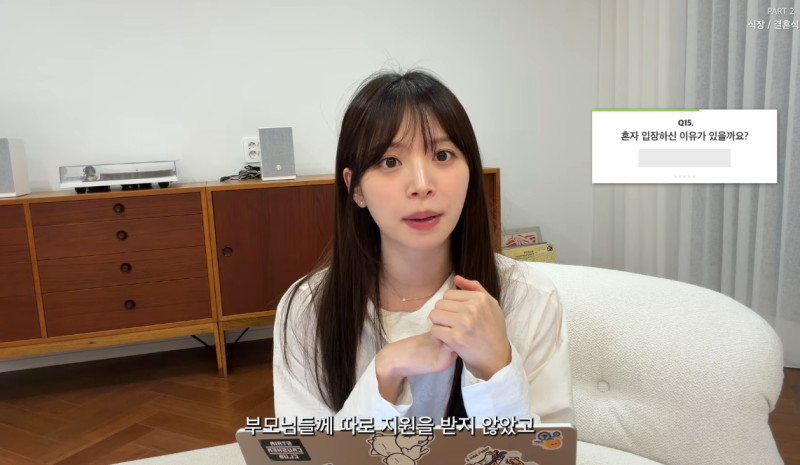 결혼식 비용 또한 부모의 지원을 받지 않았다고 밝혔다. 다만 남편 윤수영이 전부 지불했다고 했다.