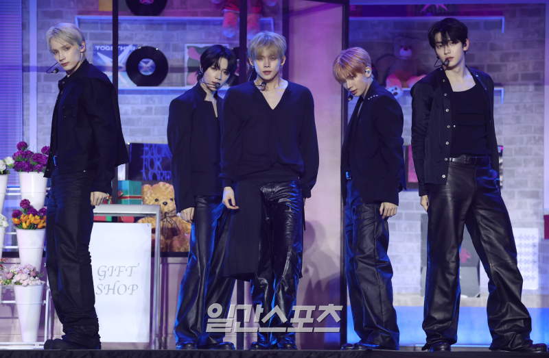 그룹 투모로우바이투게더(TXT) 수빈, 연준, 범규, 태현, 휴닝카이가13일 오후 서울 성북구 고려대학교 화정체육관에서 열린 미니 8집 '7TH YEAR: 가시덤불에 잠시 바람이 멈췄을 때' 발매 기념 쇼케이스에 참석해 타이틀곡 무대를 선보이고 있다. 타이틀곡 '하루에 하루만 더 (Stick With You)'는 중독적이고 파워풀한 후렴 멜로디가 인상적인 일렉트로 팝(Electro pop) 장르 곡이다. 서병수 기자 qudtn@edaily.co.kr /2026.04.13/