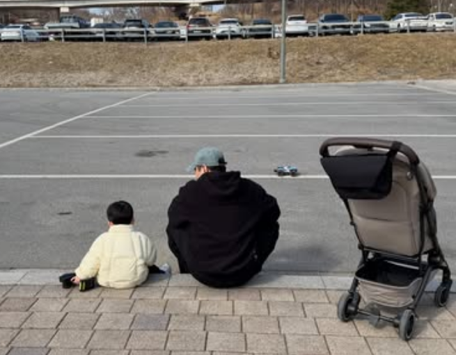 그런가 하면 차 한 대 없는 주차장에 아들과 덩그러니 앉아 쉬고 있는 소탈한 장면도 포착됐다.