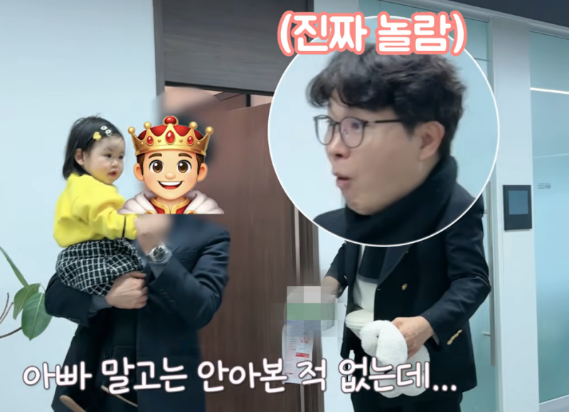 사무실 엘리베이터에 탑승할때만 해도 아빠 품에 안겨 낯을 가리던 재이는 이후 자신을 반겨주는 브랜드 직원들 앞에서 방긋 미소를 지었다. 딸의 사회생활에 아빠 박수홍도 놀란 가운데, 재이는 자신을 위해 준비된 선물을 받아보곤 윙크 팬서비스를 날리기도 했다. 사진=박수홍 유튜브 채널사진=박수홍 유튜브 채널 우유와 떡뻥 과자 둘중 하나를 선택하는 이벤트에서도 재이는 자신이 광고할 우유를 가리키는가 하면, 아빠를 뒤로 하고 초면인 브랜드 대표에게 달려가 안기기도 했다.