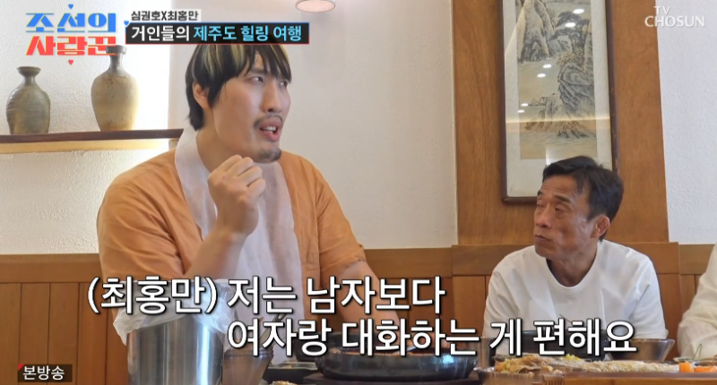 이날 심권호는 제주도에서 윤정수, 최홍만 점심 식사를 했다. ‘체육계 후배’로서 최홍만은 심권호의 눈치를 보면서도 챙기려는 모습으로 웃음을 줬다. 심권호는 “오랜만에 큰 사람이 있으니 적응이 안 된다”고 말했다.
