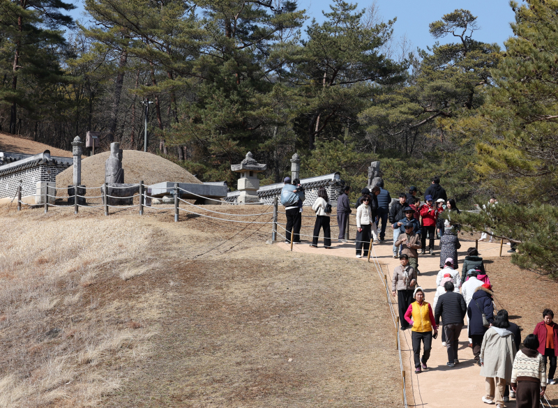 '왕사남' 1천100만 돌파…관광객 몰리는 영월 장릉 (영월=연합뉴스) 양지웅 기자 = 8일 관객 수 1천100만여명을 기록한 영화 '왕과 사는 남자'의 역사적 배경이 된 강원 영월군 장릉(단종의 무덤) 일원에 관광객 발걸음이 이어지고 있다. 2026.3.8 yangdoo@yna.co.kr/2026-03-08 14:24:54/ <저작권자 ⓒ 1980~2026 ㈜연합뉴스. 무단 전재 재배포 금지, AI 학습 및 활용 금지>