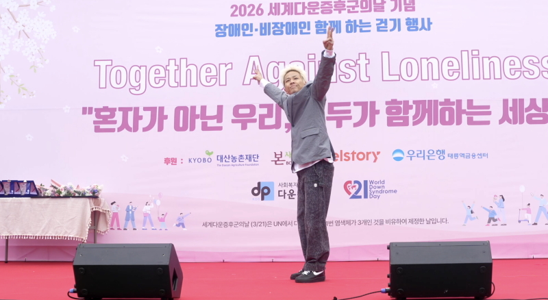 팝핀현준은 지난 11일 서울 노원구 공릉동근린공원에서 진행된 ‘2026 세계다운증후군의날 기념 행사’에 참여했다.