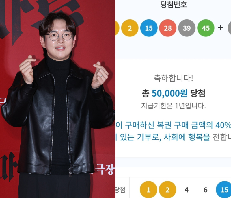 그는 “유미 전시회에 가서 꽃 대신 선물한 로또가 4등에 덜컥 당첨됐다”며 “신기한 건 QR코드로 당첨을 확인하고 있는데, 3등에 당첨된 동생이 DM을 보냈다는 것”이라고 전했다.