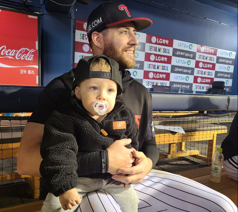 오스틴에게 가족은 큰 힘이다. 그는 "댈러스는 우리 선수단의 이름과 등번호, 응원가를 모두 외우고 있다. 나처럼 댈러스도 LG에 대한 열정이 강하다"며 "(2022년 11월에 태어나고) 한국에서 거의 대부분의 시간을 보냈다. 굉장한 축복이라 생각한다"고 말했다. 2024 올스타전 홈런 더비 우승 후 아들 댈러스와 함께 인터뷰에 나선 오스틴. IS 포토 이날 경기 중에도 오스틴이 1회 첫 안타를 치고 나가자 전광판에 댈러스의 모습이 잡혔다. 오스틴은 "지난해까지 화면에 자신의 모습이 나오면 부끄러워했다. 올해는 웃으면서 즐긴다"며 "야구장에 오는 것을 굉장히 좋아한다"고 반겼다.
